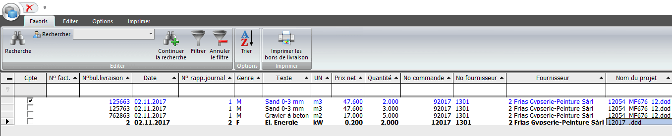 Le contrôle des bulletins de livraison permet d'avoir un aperçu rapide des livraisons de matériel sur le chantier. On peut suivre selon plusieurs perspectives toutes les entrées de marchandises.